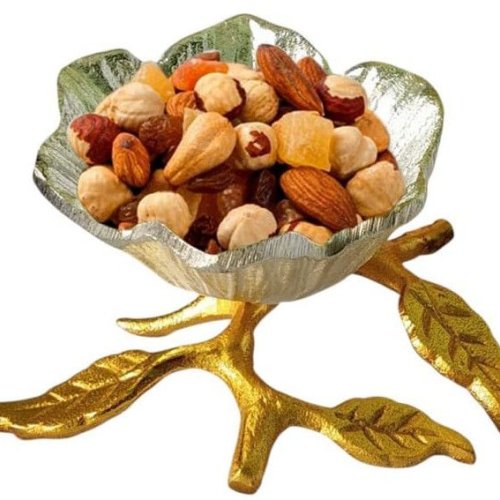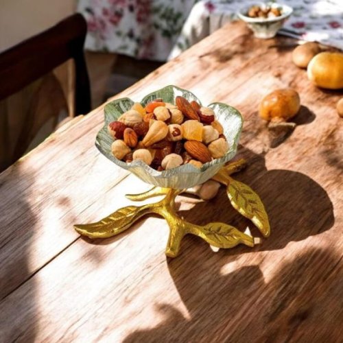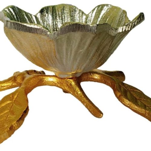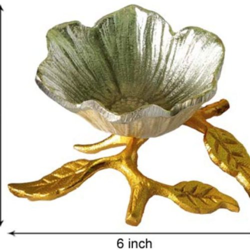 Elegant German Silver Flower Bowl with Gold Leaf Stand