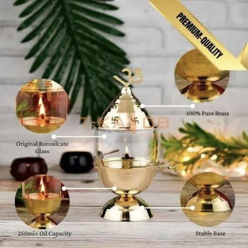 Brass Akhand Diya with Glass Cover