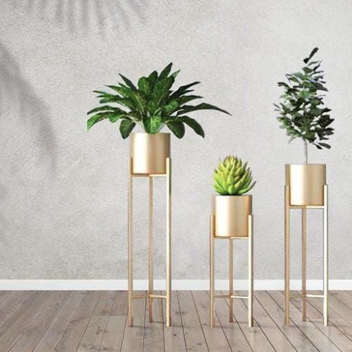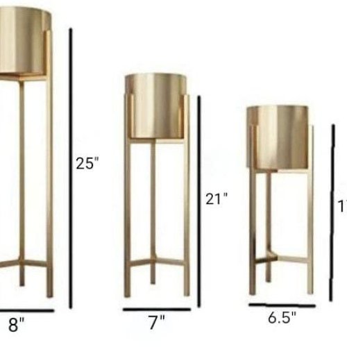 Golden Round Indoor Metal Planter With Stand